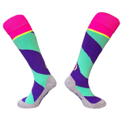 The Swirl Purple Green are a stylish and colorful pair of hockey socks. The Swirl Purple Green uses Hingly's Polycolon material to make sure your feet stay drier for longer. Stand out from the crowd with these Swirl Purple Green Hingly Hockey Socks.